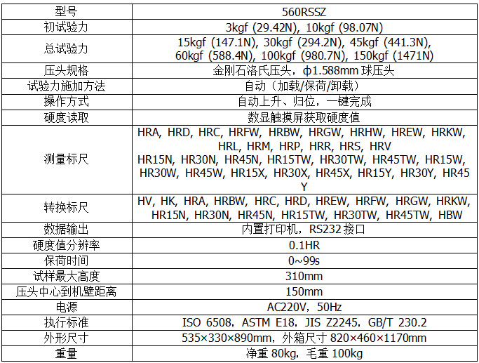 560RSSZ自動洛氏硬度計外形新穎、功能齊全、操作方便、顯示清晰直觀、性能穩(wěn)定,是集機(jī)電于一體的高新技術(shù)產(chǎn)品。儀器取消了砝碼,采用電動加卸試驗力,可進(jìn)行洛氏、表面洛氏全部標(biāo)尺的硬度測試。