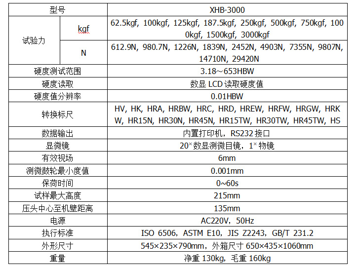 XHB-3000數(shù)顯布氏硬度計(jì)是精密的機(jī)械結(jié)構(gòu)和微機(jī)控制閉環(huán)系統(tǒng)的機(jī)電一體化產(chǎn)品,儀器取消了砝碼,采用電動(dòng)加卸試驗(yàn)力,由0.5‰精度的壓力傳感器進(jìn)行反饋,CPU控制并能對(duì)試驗(yàn)中損失的試驗(yàn)力進(jìn)行自動(dòng)補(bǔ)償。壓痕可在儀器上通過(guò)測(cè)微目鏡直接測(cè)量,在大屏幕上能更加直觀地顯示試驗(yàn)力、壓痕長(zhǎng)度、保荷時(shí)間、測(cè)量次數(shù)、轉(zhuǎn)換標(biāo)尺、日期時(shí)間,操作時(shí)只要測(cè)量完壓痕按目鏡按鈕,即可自動(dòng)計(jì)算出硬度值并顯示在屏幕上。數(shù)據(jù)結(jié)果可保存并通過(guò)表格查看,也可通過(guò)內(nèi)置打印機(jī)輸出,并配有RS232接口供用戶連接電腦輸出。硬度計(jì)還可根據(jù)用戶特殊需求配置視屏測(cè)量裝置和CCD圖像自動(dòng)測(cè)量系統(tǒng)。