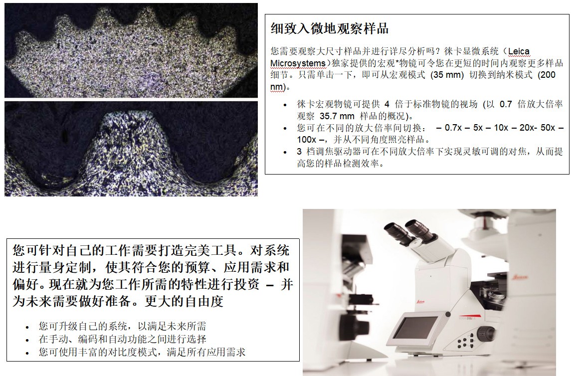 在競爭中保持領先是您事業(yè)前進的動力。無論您從事金相學、醫(yī)療設備制造還是微電子領域,速度都顯得至關(guān)重要。您可根據(jù)自身需求定制徠卡這款高度模塊化的倒置式顯微鏡。它將徠卡優(yōu)異的光學品質(zhì)、豐富的對比度模式以及直觀易用的軟件集于一身,有助于加速您的工作流程。